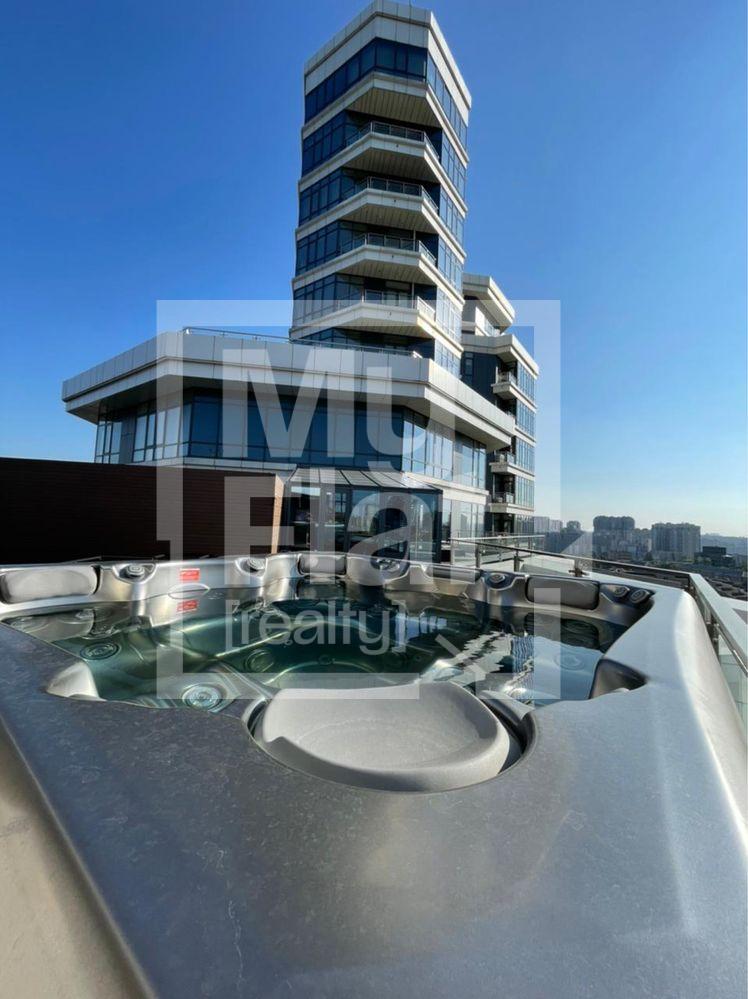 Оренда 2-х рівневого пентхауса з терасою та джакузі в ЖК Pechersky. Адреса - вулиця Болсунівська 2 До вашої уваги пропонується шикарний пентхаус з великою терасою і джакузі. Площа квартири – 240 кВ м. Площа тераси – 130 кВ м. кв. У квартирі є: - простора кухня-вітальня (60 кВ м) - 3 спальні (головна спальня зі своїм гардеробом, санвузлом, балконом та окремим виходом з квартири); - 3 санвузли; - 3 гардероби; - пральня; - велика тераса із зимовим садом та джакузі; У квартирі зроблено новий ремонт за авторським проектом. Укомплектована всією необхідною технікою та апаратурою: - побутова техніка Bosch; - кліматична техніка Mitsubishi; - італійська плитка; - тепла підлога; - Led tv – 70 дюймів; - меблі на терасі; - джакузі; - зимовий сад. -паркомісце Без комісії.