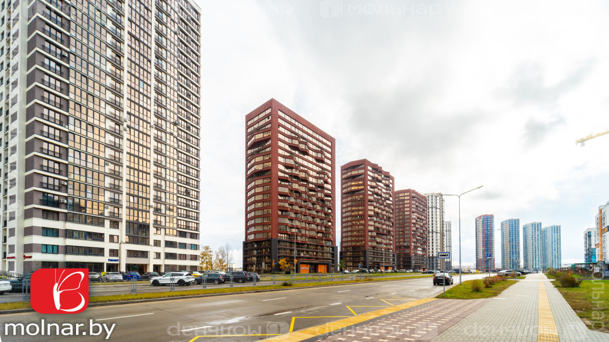 • Развитая инфраструктура ЖК: "Минск-мир, современные детские и спортивные площадки. В шаговой доступности – фитнес-центр, супермаркеты, уютные кофейни.