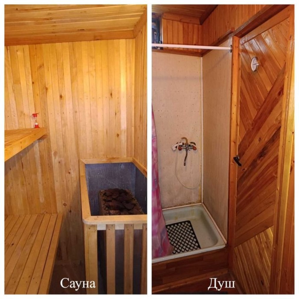 Первый уровень дома расположен практически в земле, где находятся: 1) - гараж пл. 23,7 кв. м с местом для автомобиля и хранения различного оборудования, стройматериалов, комбинированного деревообрабатывающего станка (строгание, фрезерование, циркулярка, наждак) и т.д.; 2) - электросауна пл. 3,8 кв. м с регулируемой мощностью 5 квт и с помещением душа пл. 3,3 кв. м; 3) - подвал пл. 11,0 кв. м для хранения урожая и консервации, дубовых бочек для вина и различных ёмкостей; 4) лестница и вход на второй уровень; 5) - на входе в гараж слева и справа расположены 2 подсобных помещения для хранения угля, дров и сельхозинвентаря площадью по 3,45 кв. м каждое.