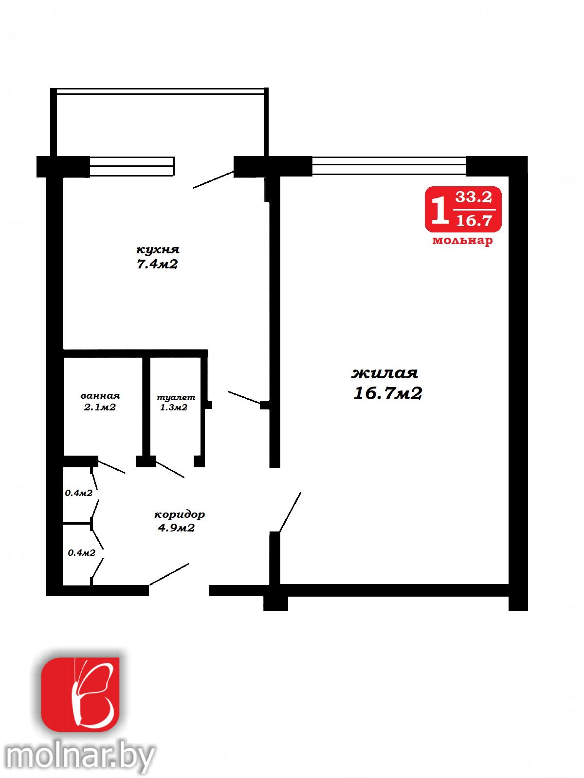 33/17/7 кв. м