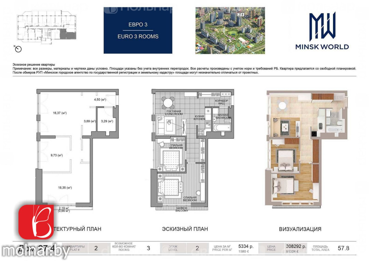 Продается евротрешка в ЖК "Минск-Мир" Дом "«Ёёги парк»".