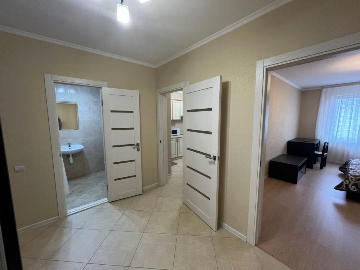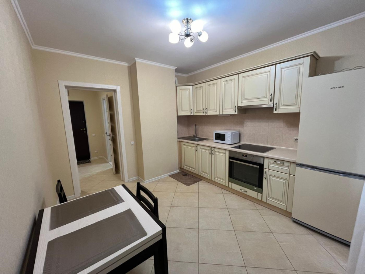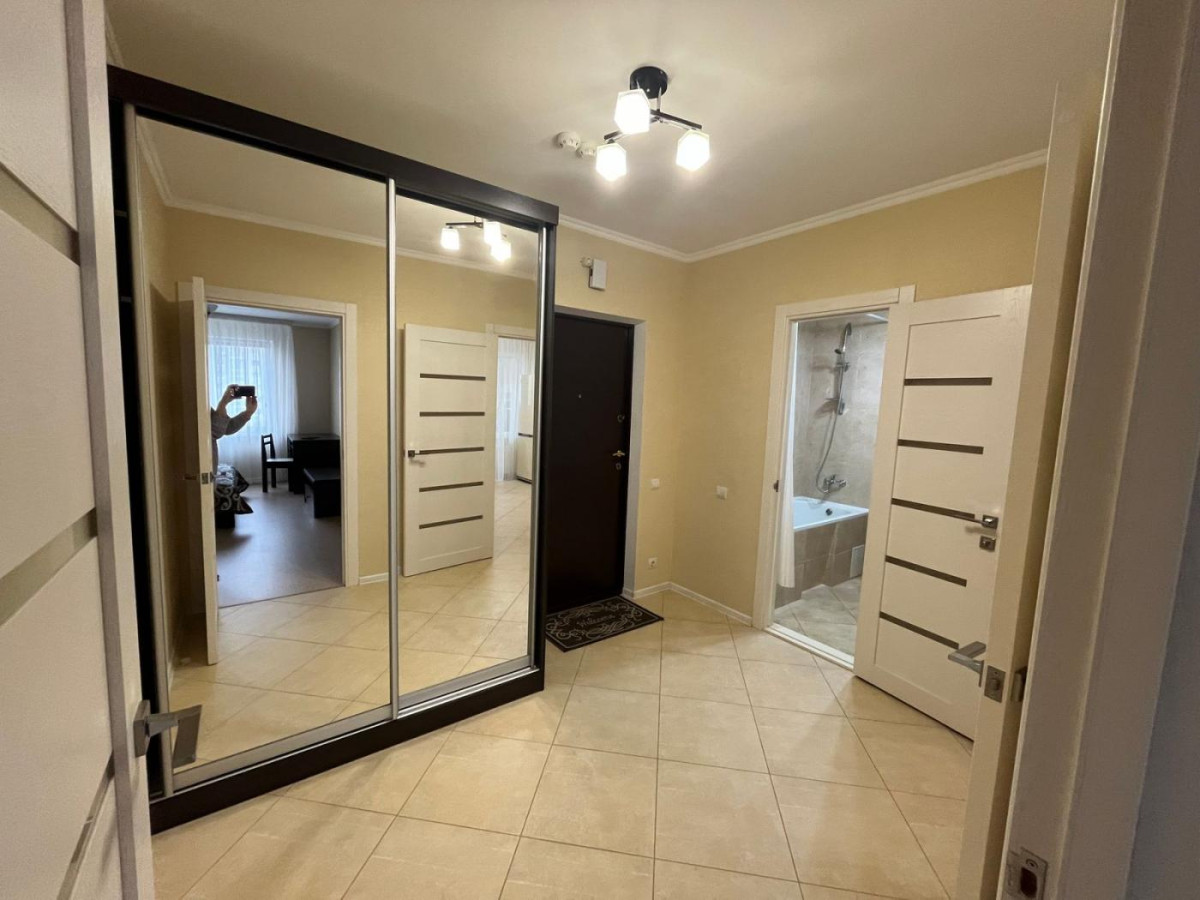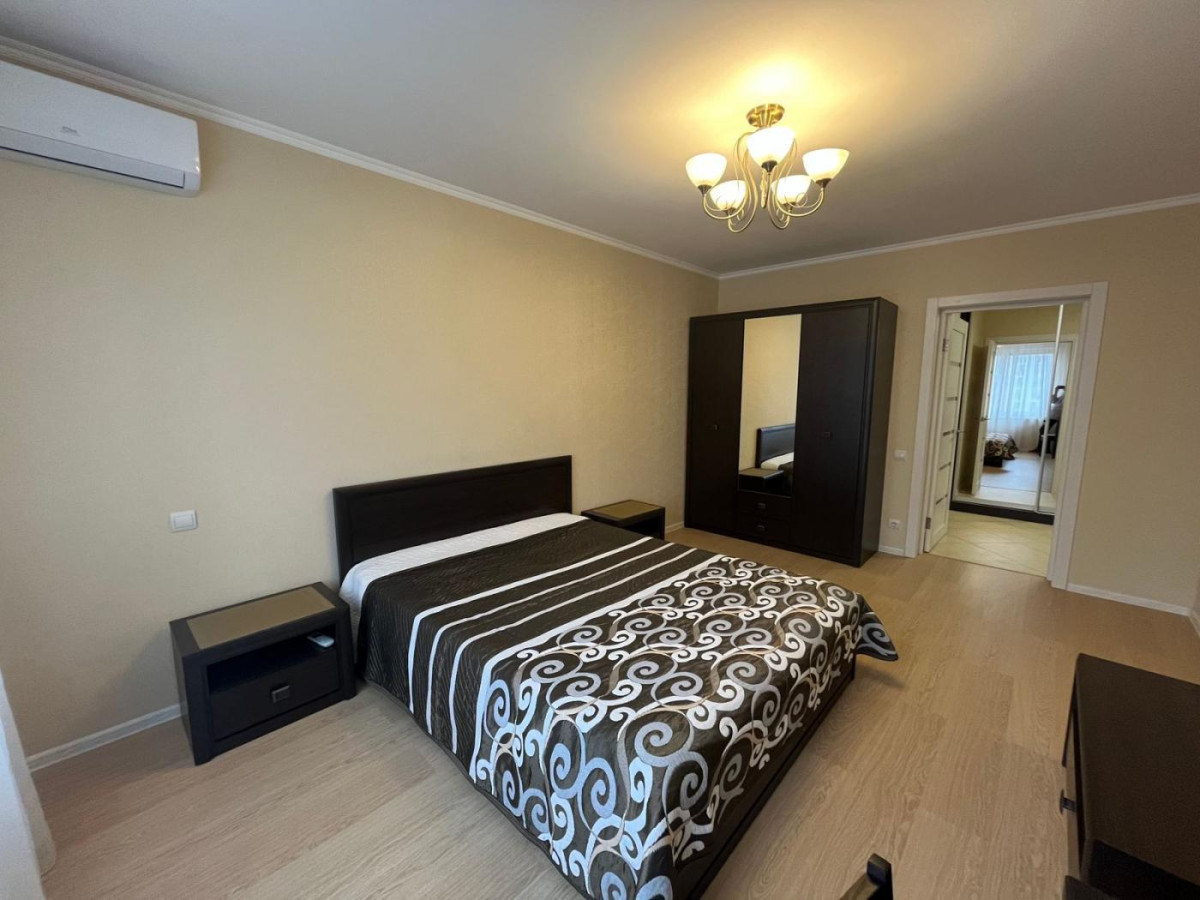 Повністю мебльована сучасними меблями: двоспальне ліжко з ортопедичним матрацом, робочий стіл, шафа-купе і т.д. Побутова техніка: бойлер, кондиціонер, мікрохвильова піч , пральна машина, холодильник, витяжка, духова шафа, керамічна варильна поверхня.