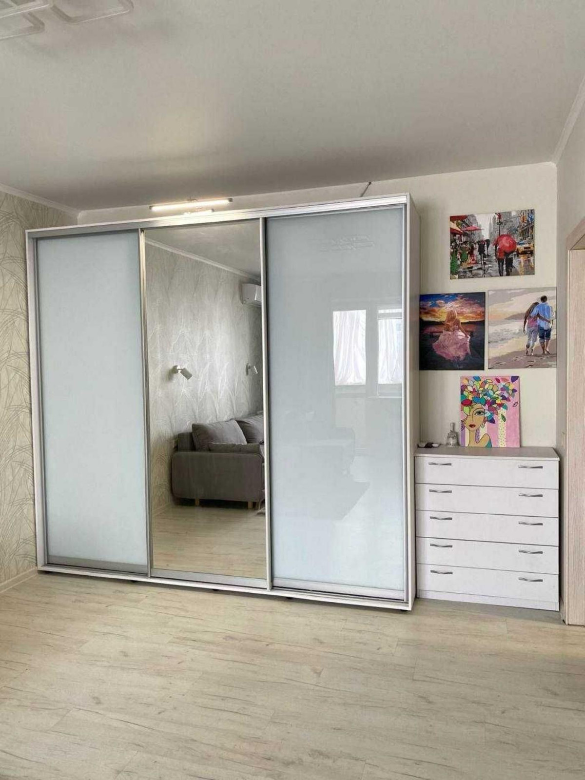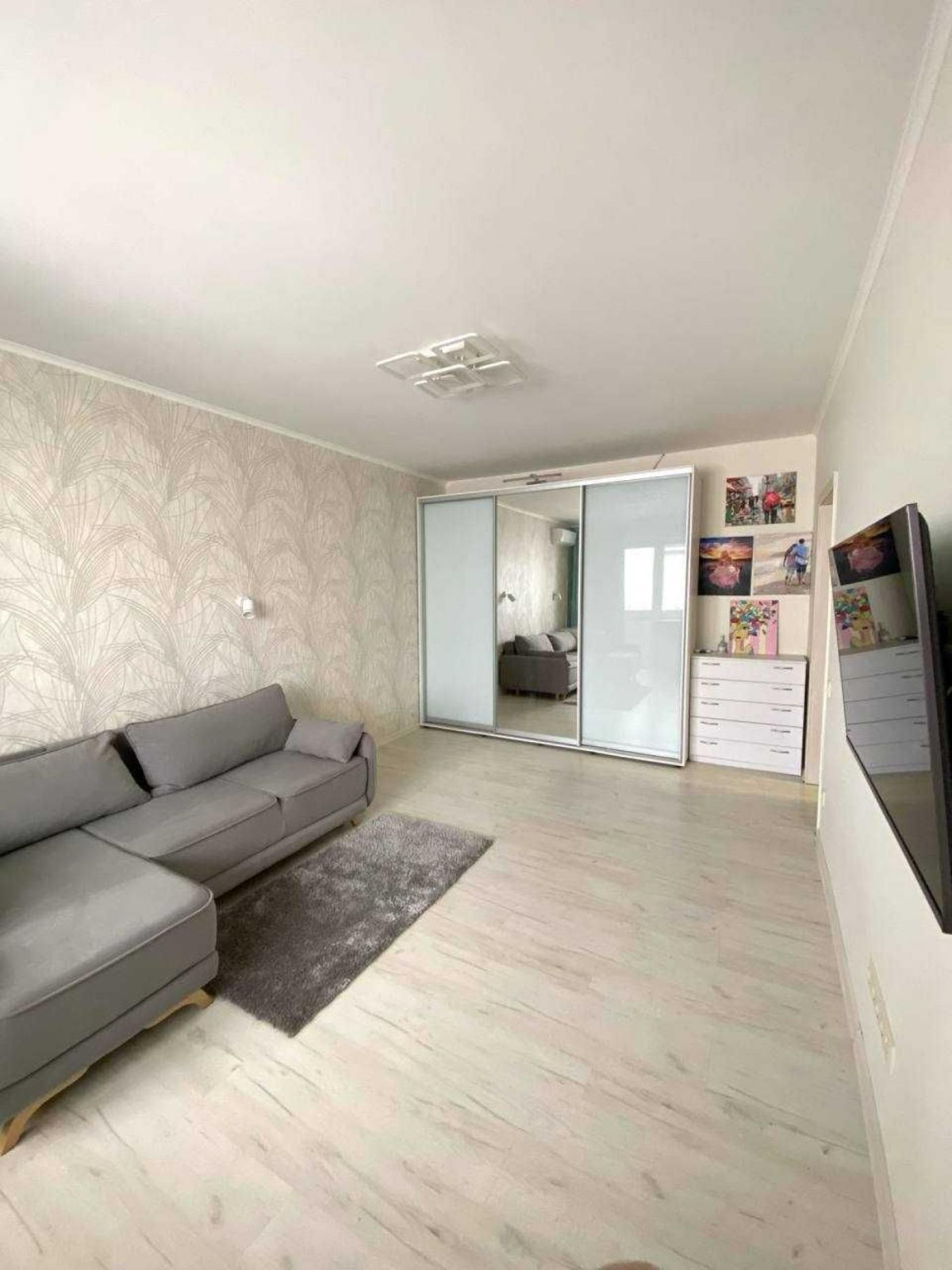 Вітальня: великий розкладний диван, вбудована шафа, великий телевізор