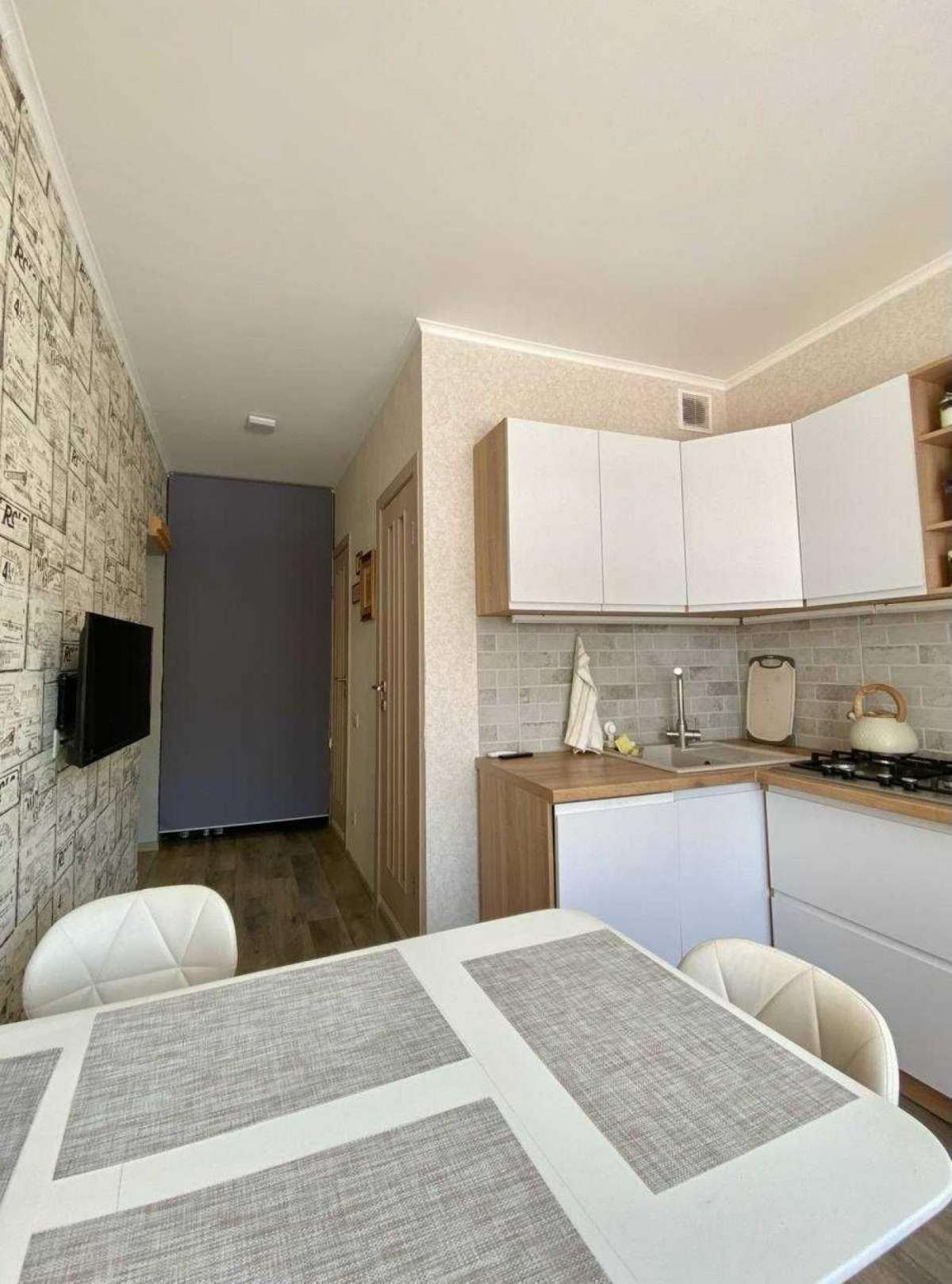 Кухня: плита газова, холодильник, мікрохвильова піч, вбудований фільтр питної води, посудомийна машина, телевізор