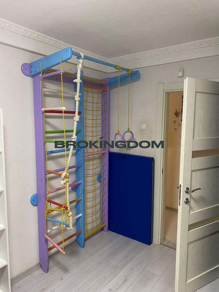 - Облаштована дитяча кімната з фінською стінкою та матом — улюблене місце для ігор, руху й теплих родинних моментів
