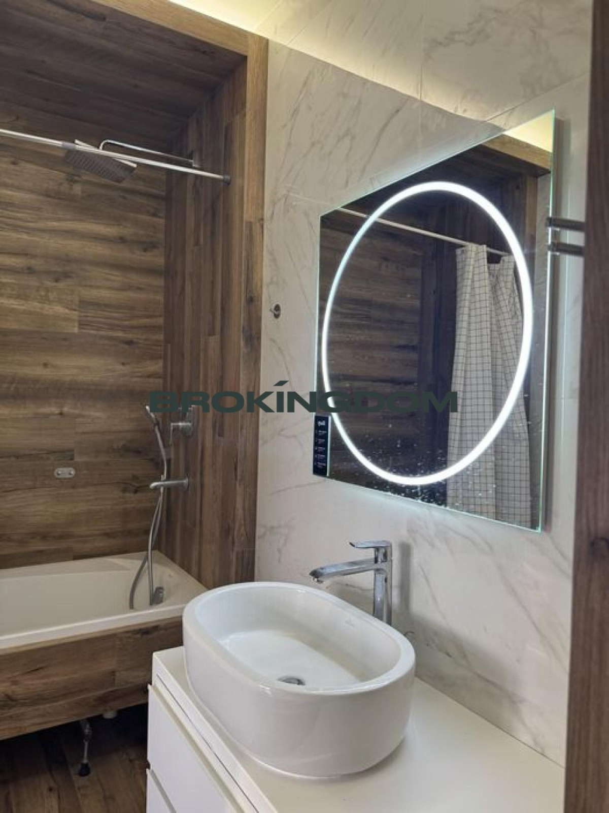 Простора ванна кімната з підсвічуванням, дзеркалом з LED, інсталяцією, ванною та на фото ви можете побачити, що виділено місце для бойлера, все проведено для нього.