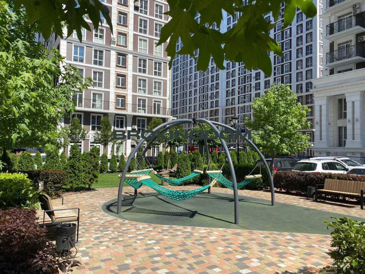 -Видова Квартира 61 кв.м, Будинок "Лінкольн", функціональне планування, дві окремі спальні, та кухня-студіо, яка за бажанням об'єднується с лоджією. Вікна дивляться на Паркленд. Два роздільних санвузли. Лічильники на воду, електроенергію та тепло (автономна котельня). Сучасне фойє, три ліфти, один ліфт спускається в підземний паркінг, також є сходи в паркінг. Біля будинку відкрили новий дитячий майданчик.