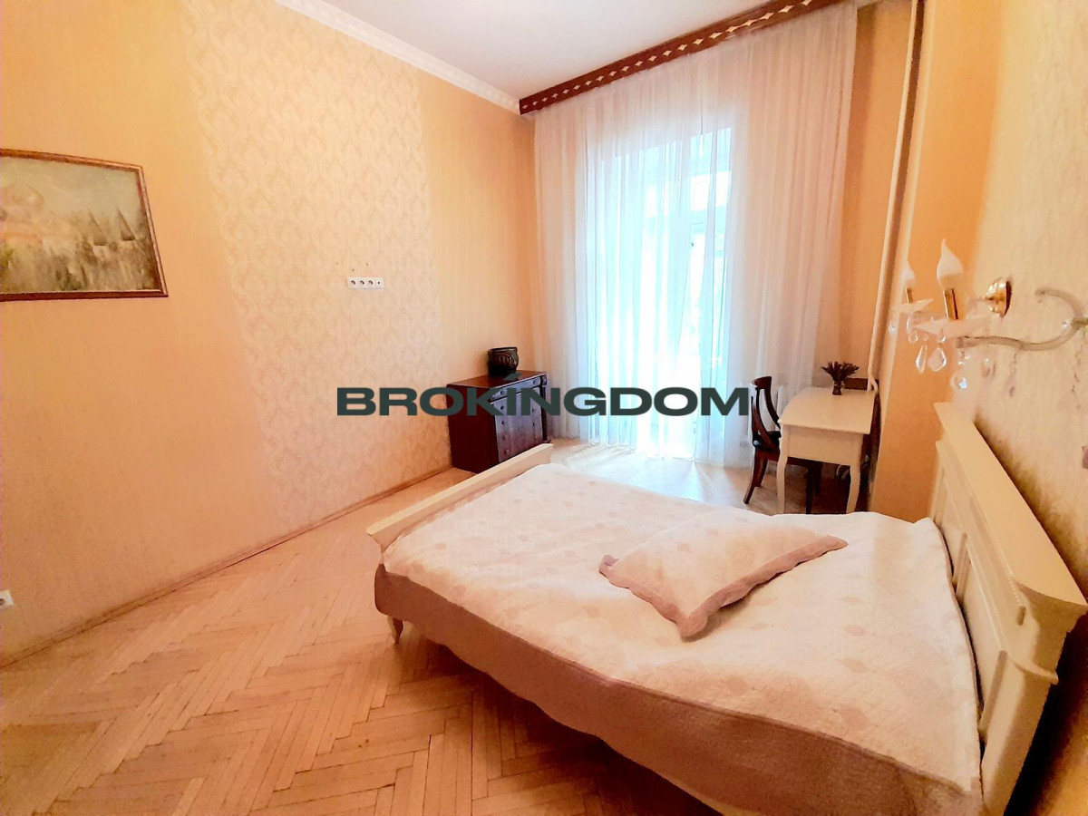 Квартира на 2му поверсі, площа: 80,0\46.5\15,3. Тихий центр. будинок з охороною та закритим двором, парковкою. Повністю мебльована, заходь і живи. Хороший якісний ремонт в класичному стилі, високі стелі, паркет, вся побутова техніка, кондиціонери, 2 балкони. Спальня виходить у двір. Просторі кімнати, велика кухня.