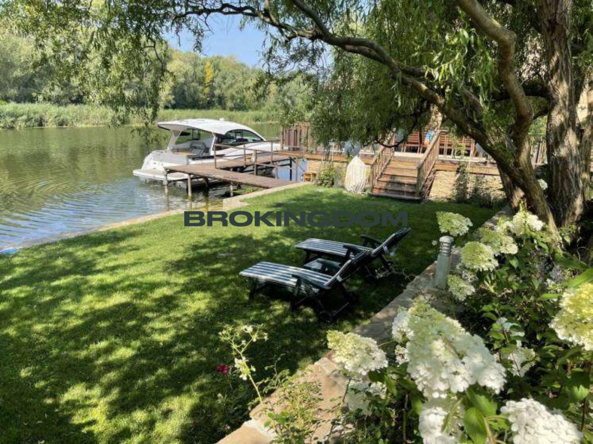 Гнідин (поряд Осокорки), СТ «Урочище Гатне», 11 км. від метро Славутич по вул. Центральній, між 1-м та 2-м шлюзами, котедж на березі затоки Дніпра, оздоблення, меблювання та оснащення побутовою технікою 2021 року . Загальна площа 720 м2 / житлова площа 203 м2 .