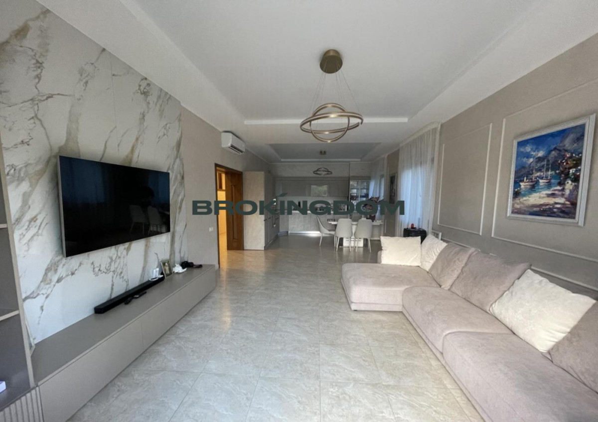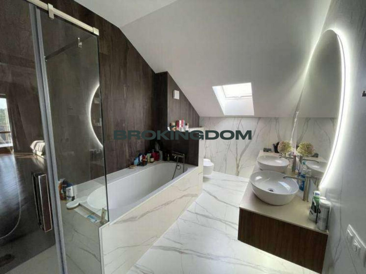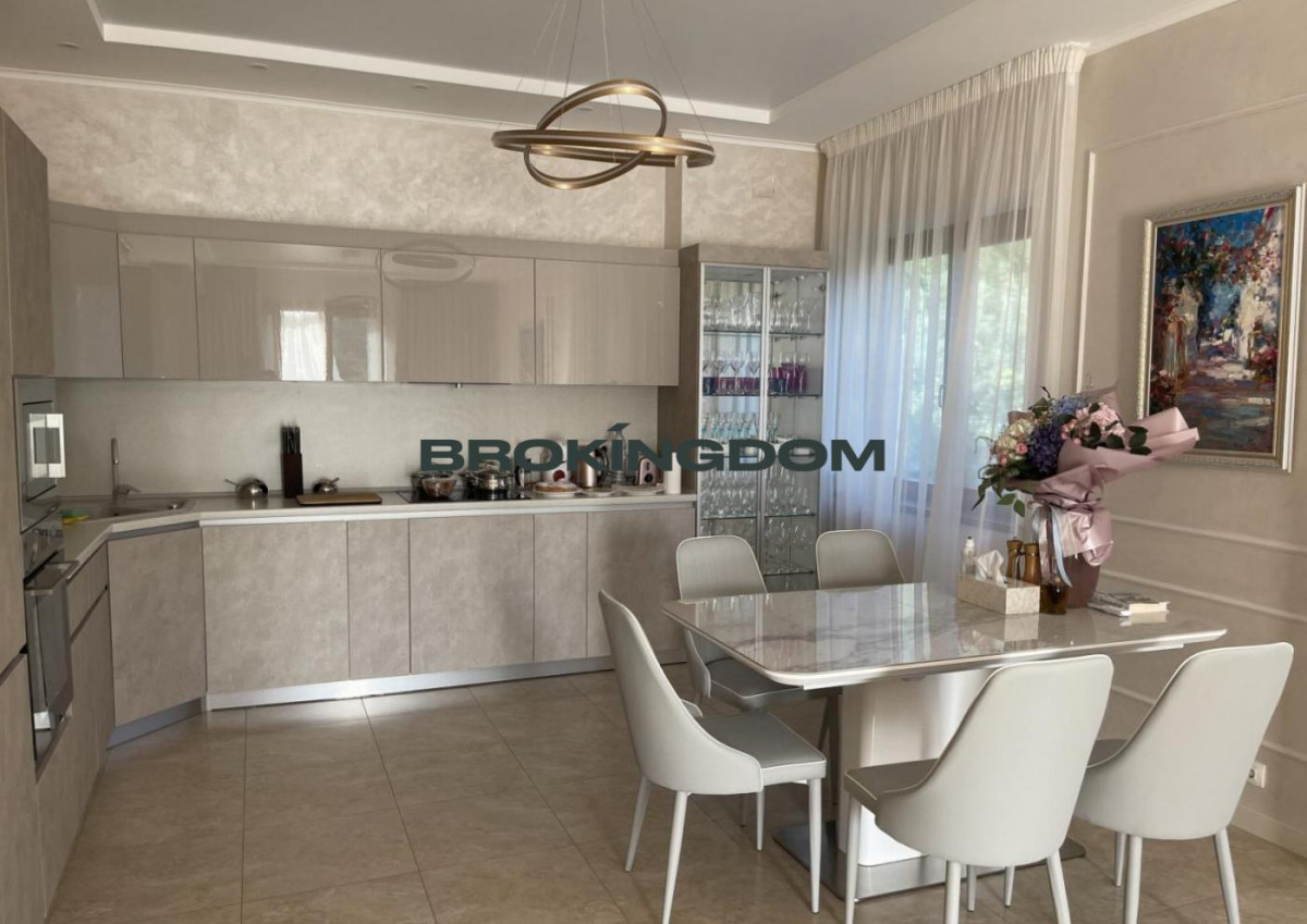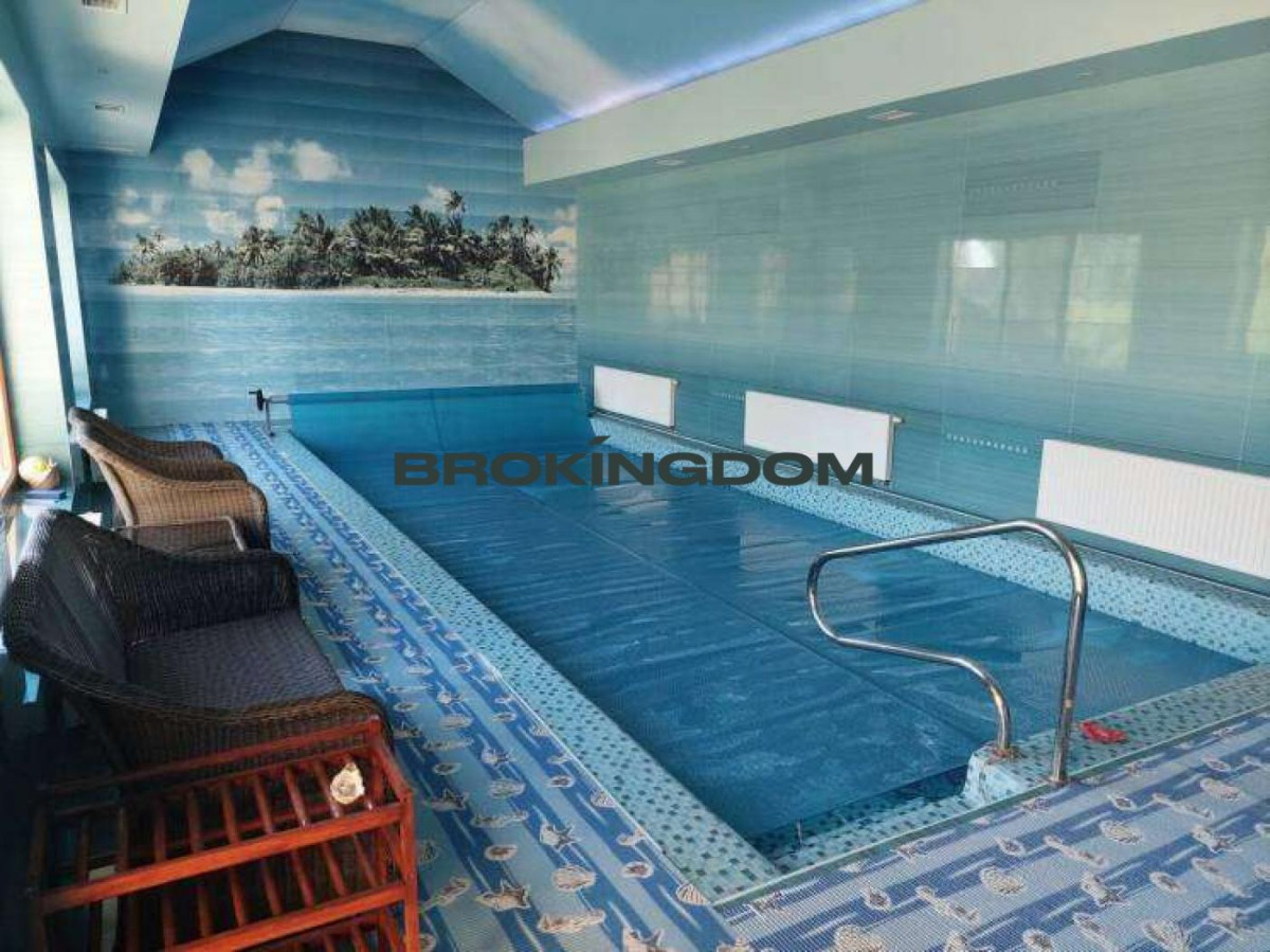 Кухня-студіо 43 кв.м, 4 спальні, 4 санвузли, вбиральня, басейн 58 кв. м, сауна, приміщення для домашнього кінотеатру, більярд, тренажери, гараж, елінг з підйомником для катера, будиночок для охорони та гостьової - 45 кв.м, всі комунікації, кондиціонери, вікна дерев'яні склопакети з броньованими тонованими стеклами, ландшафт, ділянка фактично 20 сотів., у дворі та біля паркану можуть паркуватися 8 автомобілів .