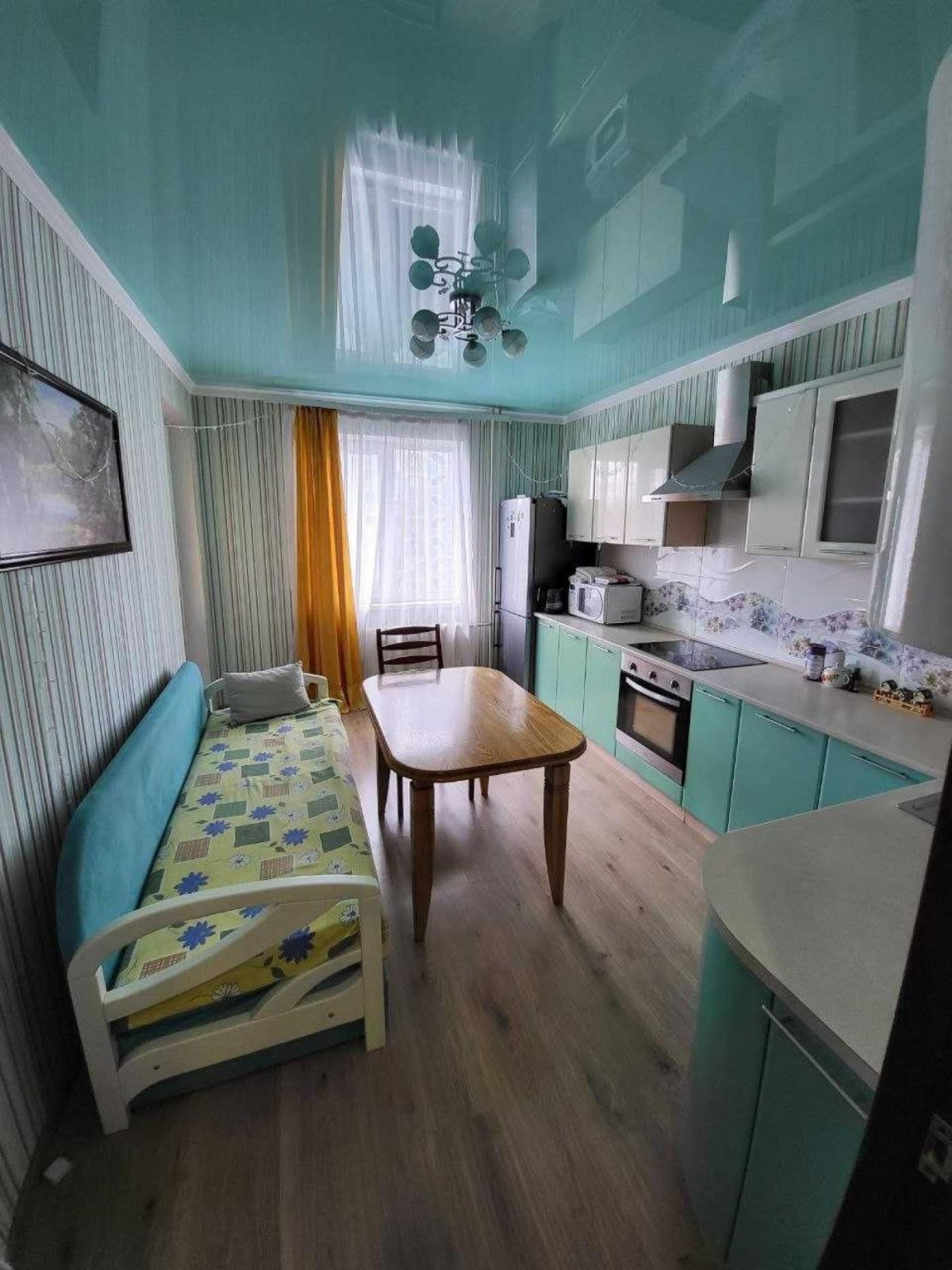 Отличная 1 комнатная квартира в хорошем состоянии. Есть вся мебель и техника для комфортного проживания. Холодильник, новый кондиционер, новая стиральная машина , духовой шкаф, чайник, микроволновая печь, новый диван.