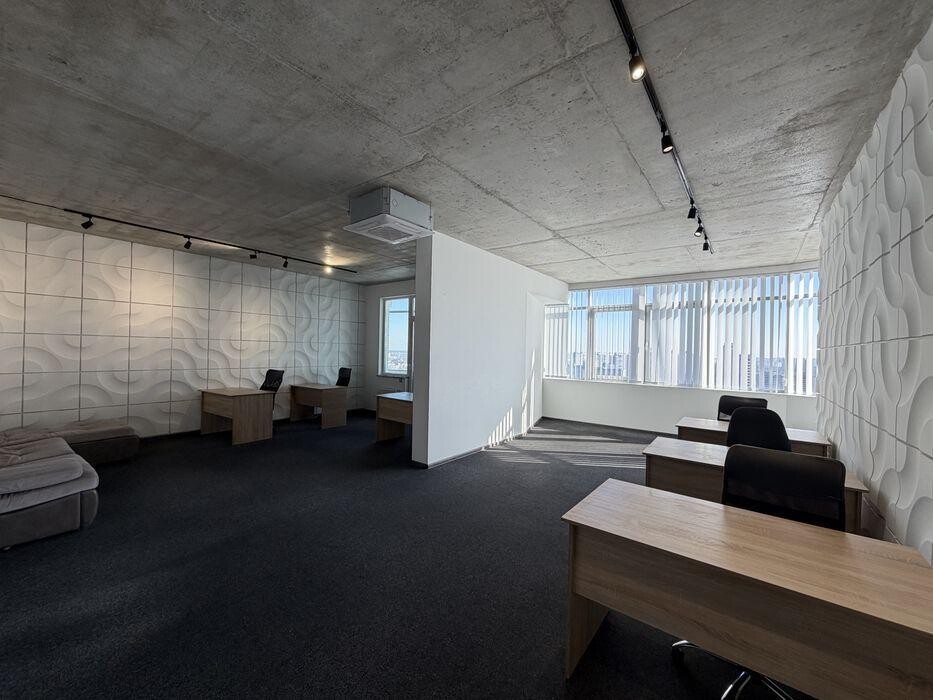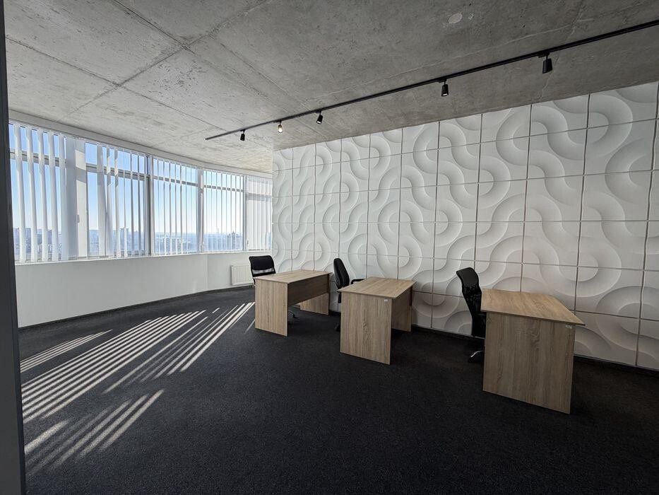 Локація Дніпровський район, 24 поверх із 25. Панорамні вікна відкривають вражаючий краєвид на правий і лівий берег Києва, створюючи статусний простір для команди та прийому клієнтів.