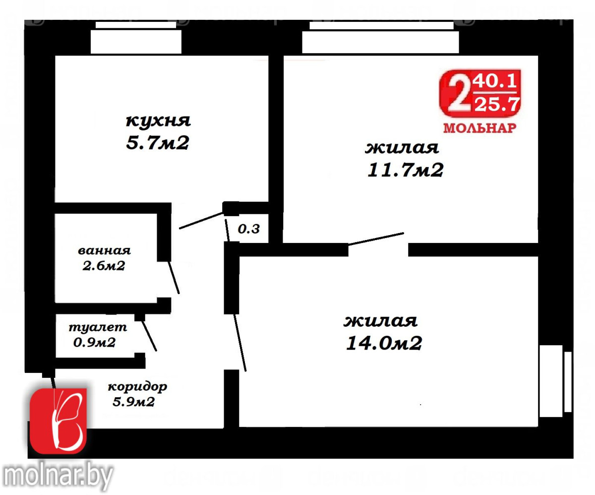 В ней есть все необходимое: оборудованная кухня, просторная гостиная и изолированная спальня, раздельный санузел!