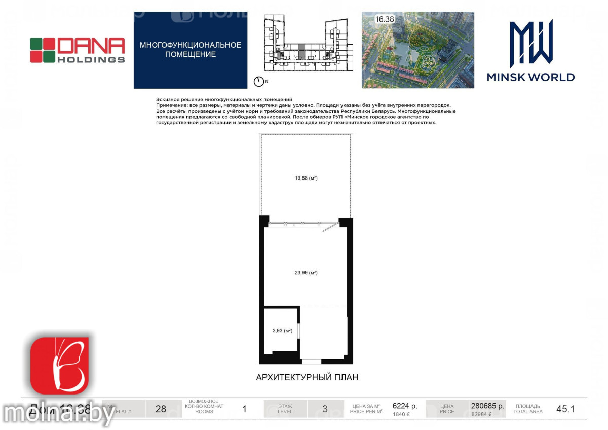Развитая уже, а в будущем будет развита максимально, инфраструктура: большая парковка возле дома, благоустроенная детская площадка, детский сад с бассейном. В квартале первые этажи отданы под коммерческую недвижимость. Магазины, банки, торговые центры, здесь есть все! А сколько всего еще будет, включая Minsk World center и крупнейший ТОЦ «Аvia Mall» в нескольких минутах ходьбы от дома.